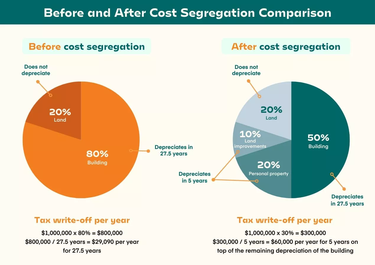 Cost Segregation is a process by which commercial property owners can accelerate depreciation and reduce the amount of taxes owed. Depreciation is a deduction that real estate investors can claim on their income taxes each year to help them recover the cost of owning, operating and maintaining that property. By using this strategy, you will reduce the amount of money you owe on your income taxes each year. This also reduces the expenses of owning investment real estate. Doing this frees up money for other investments or purchases.